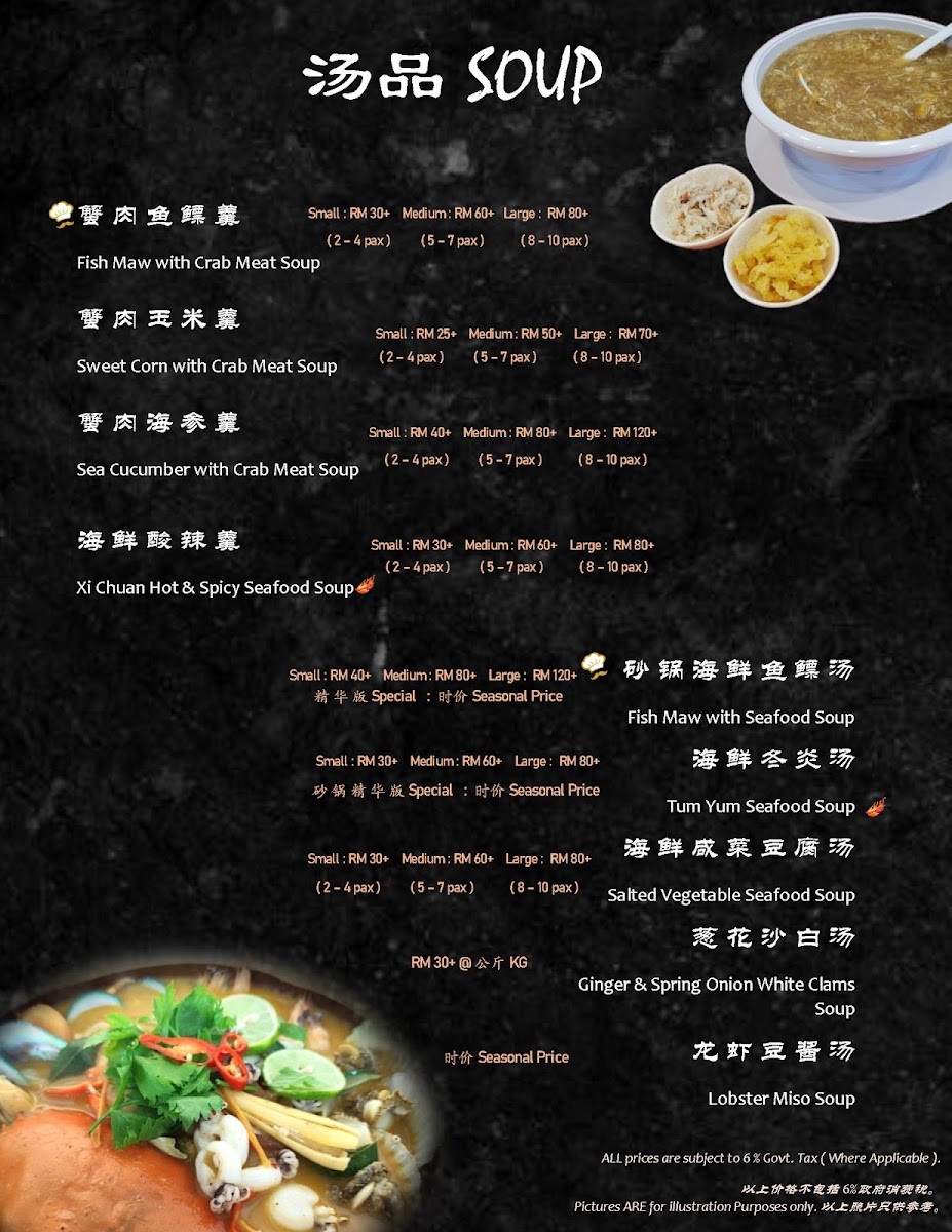 Overall, the menu focuses on traditional Chinese seafood cuisine with emphasis on freshness and variety, providing an array of dishes that reflect local culinary styles and ingredients commonly enjoyed in the region.
