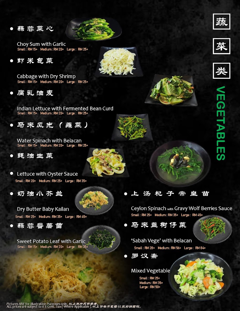 The menu at Ocean King Seafood Restaurant features a variety of Chinese seafood dishes prepared with fresh, locally sourced ingredients. The offerings include a selection of steamed fish, prawns, and squid dishes, as well as vegetable plates and rice-based options. Signature preparations such as Steam Fish with Teo Chau Style, Prawn Yee Mee, Honey Fried Squid, Lobster Cantonese Style, Lemon Chicken, and Curry Fried Rice Noodles are part of the meal choices.